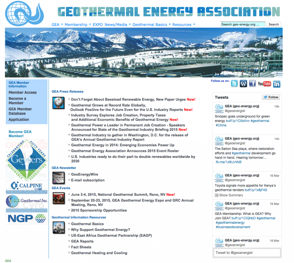 La Asociación de Energía Geotérmica (Geothermal Energy Association – GEA) y su patrocinador Nivel Oro, Ormat; siendo el anfitrión de la quinta edición Cumbre Nacional de Geotermia (# GEASummit2015) en el Grand Sierra Resort and Casino en Reno, NV, el 3-4 de junio. La Cumbre Nacional geotérmica es el principal foro para la discusión de políticas, que reúne a la industria geotérmica para un diálogo con los reguladores, servicios públicos y estatales, regionales y legisladores federales. El tema de este año es “Políticas geotérmicas como estímulo para el crecimiento económico y la calidad ambiental”.