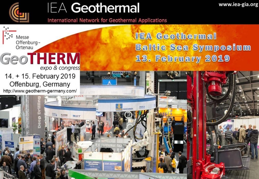 La Agencia Internacional de Energía - Programa de Colaboración Tecnológico Internacional, junto a la Asociación Internacional de Geotermia, realizarán un simposio denomonado Baltic Sea Geothermal Symposium, junto al congreso GeoTHERM Expo & Congress, el 13 de Febrero de 2019, en Offenburg, Alemania.