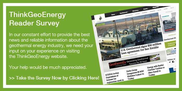 En nuestro constante esfuerzo por ofrecer las mejores noticias y contenidos sobre la industria geotérmica, necesitamos su opinión sobre el sitio web ThinkGeoEnergy.