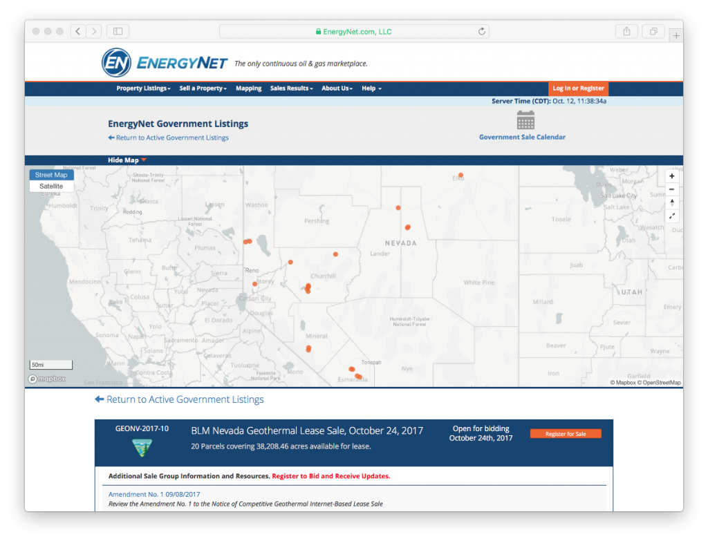 BLM Geothermal realiza venta electrónica de licencias en 20 parcelas en Nevada – Oct. 24 de 2017