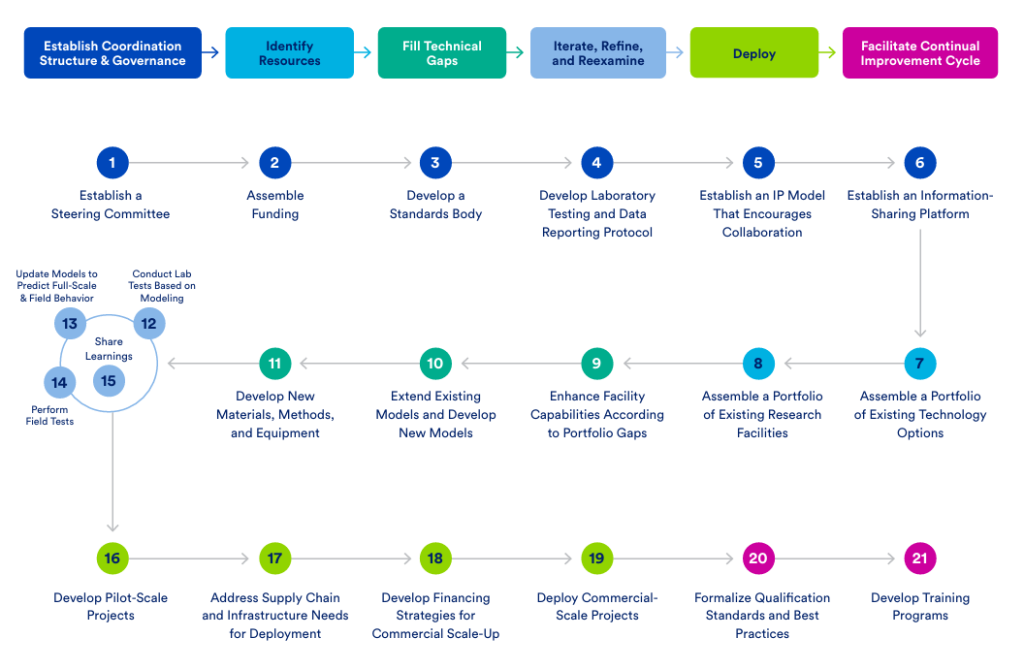 Un informe publicado por el Grupo de Trabajo para el Aire Limpio (CATF) propone una hoja de ruta y una estrategia práctica para mejorar la preparación y acelerar el despliegue de la tecnología geotérmica de rocas supercalientes (SHR). La hoja de ruta se divide en seis fases coordinadas que guían la inversión, la colaboración y el progreso técnico.