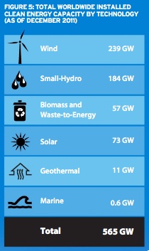 Previous ImageNext Image CleanEnergy_capacity_2011 Global Clean Energy Capacity by Technology 2011 (source: PEW Environment)
