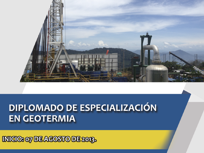 El Consejo Nacional de Energía, la Facultad de Ingeniería y Arquitectura de la Universidad de El Salvador junto a la participación de LaGeo, con el apoyo del Banco Interamericano de Desarrollo y el Fondo Nórdico de Desarrollo, celebrarán a partir del día 7 de Agosto del 2013 en San Salvador, El Salvador, un Diplomado de Especialización en Geotermia.