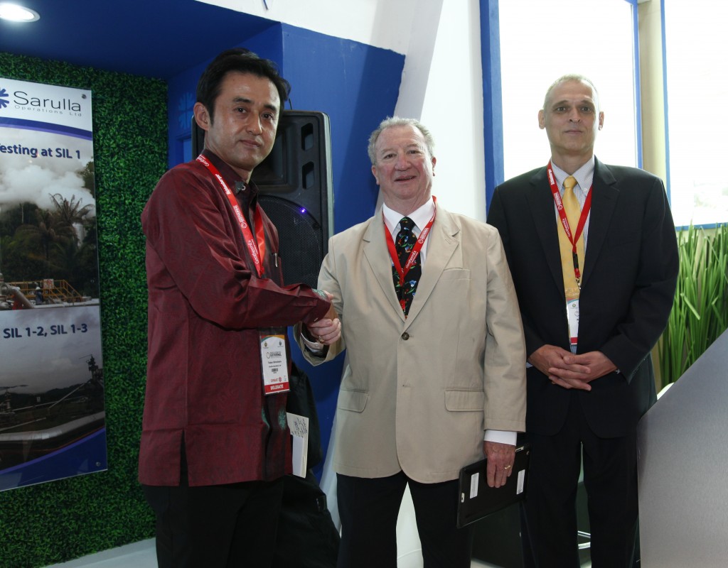 El evento “Indonesia International Geothermal Convention & Exhibition 2014″ sirvió como plataforma para Shinohara Takao, consejero delegado de SOL, Bill Lajousky, director de operaciones de SOL y Bill Rickard, fundador y presidente de GRG, para formalizar el contrato.