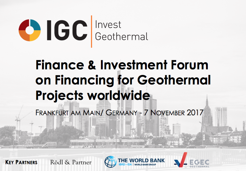 Con los años, el principal cuello de botella para el desarrollo de proyectos geotérmicos ha sido la disponibilidad de financiamiento para el desarrollo de la fase inicial de los proyectos. Por lo tanto, este es el tema clave de la primera conferencia mundial de inversión en geotermia, que tendrá lugar el 7 de noviembre de 2017 en Frankfurt, Alemania. Sin embargo, el financiamiento para las primeras etapas del desarrollo de proyectos geotérmicos no es el único tema, habrá más temas en carpeta por discutir.