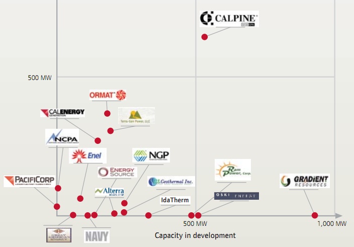 Previous ImageNext Image Islandsbanki_player_development2011 Operating capacity and capacity in development, overview in Islandsbanki’s U.S. Geothermal Energy Market Report 2011