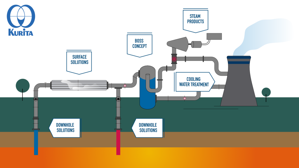 Kurita tiene como objetivo presentar un paquete completo de soluciones en geotermia que incluye operaciones de limpieza en línea y fuera de línea si es necesario, tratamiento de agua de enfriamiento y sistemas de monitoreo en línea para rastrear el rendimiento de los productos y asegurar el proceso cada segundo.