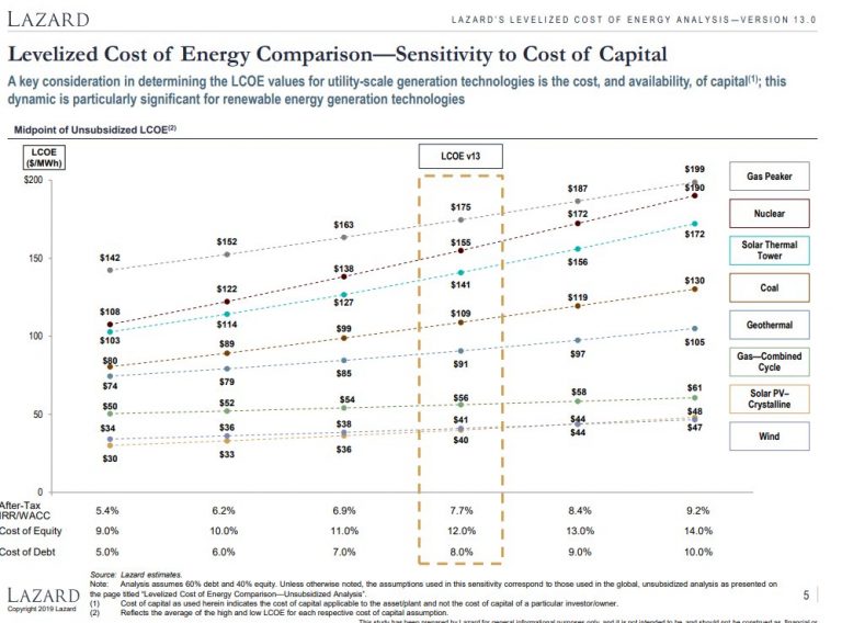 Lazard Levelized Cost of Energy – Analysis 2019 (source: Lazard)