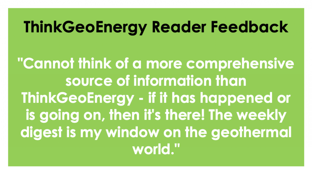 “No se me ocurre una fuente de información más completa que ThinkGeoEnergy. Si ha sucedido o está sucediendo, ¡está ahí! El resumen semanal es mi ventana al mundo geotérmico“.