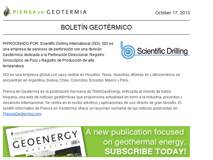 Piensa en Geotermia pública un resumen todos los jueves sobre las noticias publicadas durante toda la semana a través de nuestro servicio Boletín de Noticias o Newsletter.