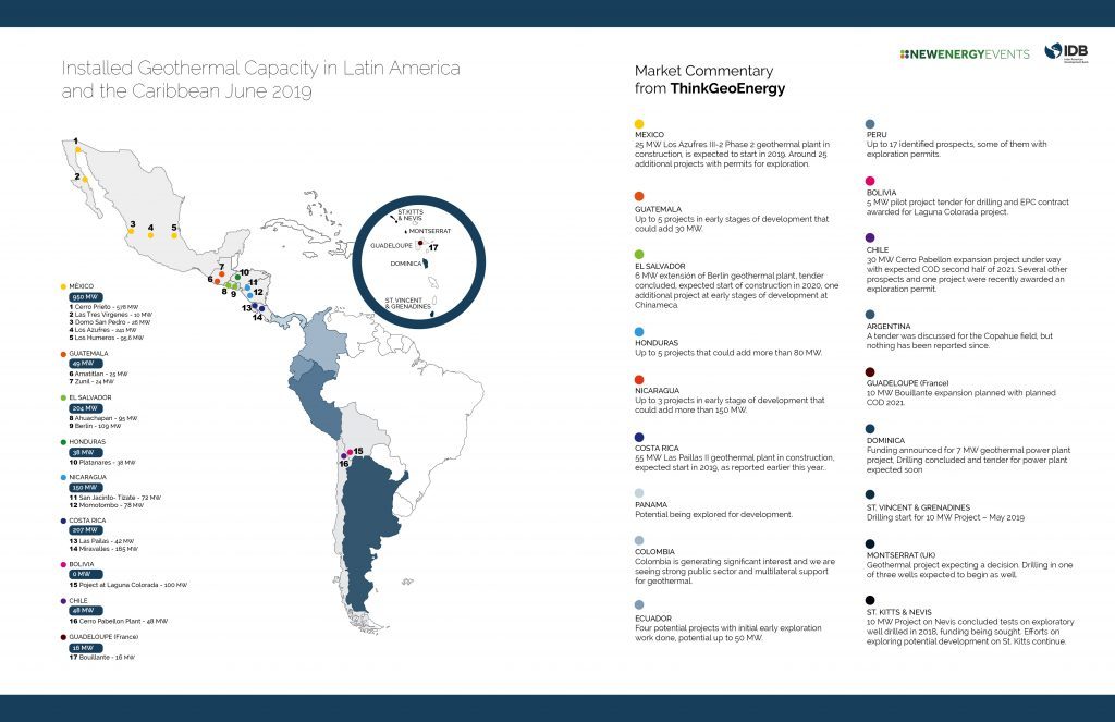 Preparándonos para el 6to Congreso Geotérmico para América Latina y El Caribe ( 6th Geothermal Congress for Latin America & the Caribbean), que se desarrolla este 17 y 18 de Julio en Santiago, Chile, New Energy Event ha colaborado con el Banco Interamericano de Desarrollo (BID) y ThinkGeoEnergy para actualizar el mapa con la capacidad geotérmica instalada en America Latina y el Caribe.