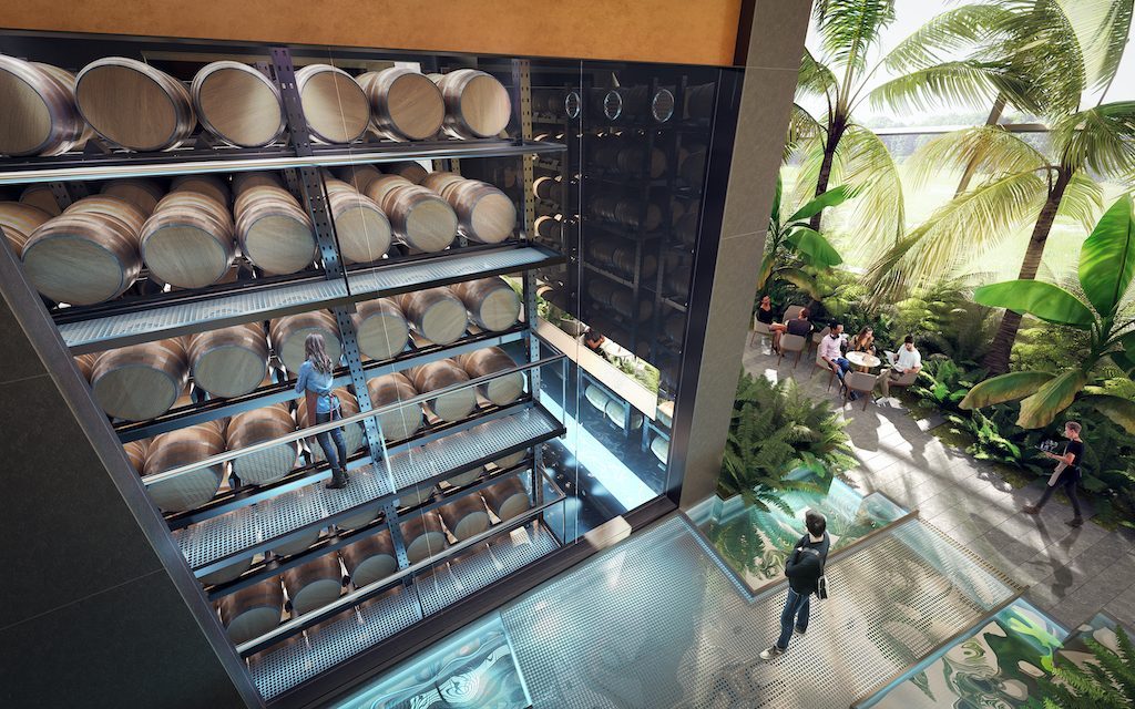 El bioma, de aproximadamente 14 metros de altura en su punto más alto, incorporaría 4 cápsulas de maduración, cada una con toneles de 800 X 200L, lo que equivale a 640.000 litros de ron en total que se madurarían en forma tropical en un período de cinco a diez años.