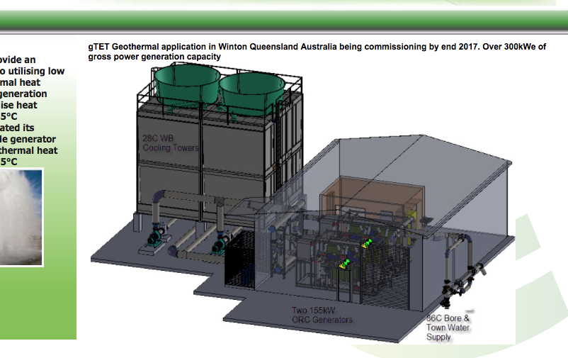 Una pequeña planta geotérmica ORC, de 310 kW, entrará en operación en Diciembre de 2017, en la pequeña ciudad de Winton, en el estado de Queensland en Australia.