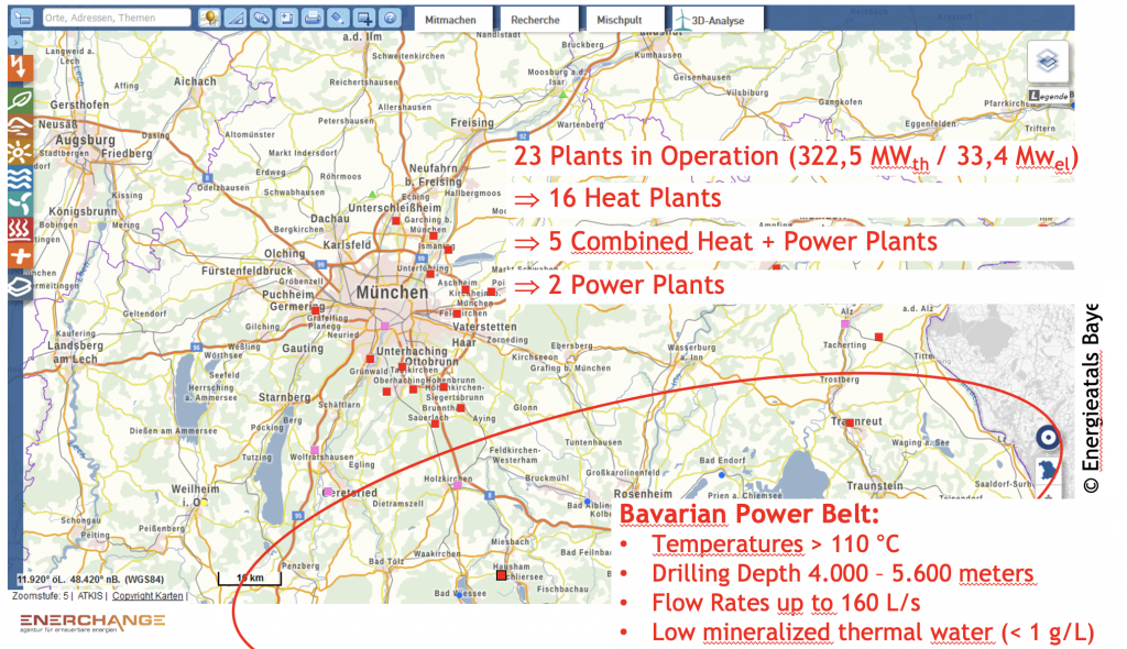 Map of geothermal plants and projects in Bavaria, Germany (source: presentation screenshot)