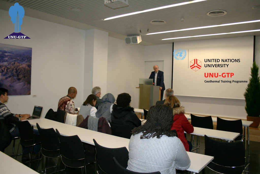 El director, Lúdvik S. Georgsson, dirigió la ceremonia de apertura y pronunció un discurso sobre el trabajo y la historia del Programa de Capacitación Geotérmica de la Universidad de las Naciones Unidas y dio la bienvenida al nuevo grupo de becarios. El Dr. Guðni A. Jóhannsson, Director General de Orkustofnun, dio la bienvenida a los becarios en nombre de la institución anfitriona Orkustofnun (la Autoridad Nacional de Energía de Islandia).