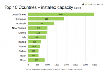 Los 10 principales países geotérmicos, ordenados por su capacidad instalada – Finales de 201