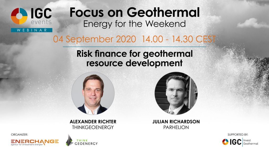 Webinar – Financiamiento de riesgo para el desarrollo de recursos geotérmicos/Parhelion – 4 de septiembre de 2020
