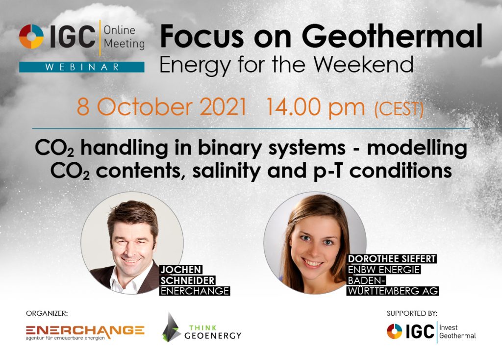 Como parte de la serie regular de seminarios web de IGC, una asociación de Enerchange y ThinkGeoEnergy, Dorothee Siefert de EnBW Energie Baden-Wuerttemberg AG en Alemania, hará una presentación sobre “Gestión del CO2 en sistemas binarios: modelado de contenidos de CO2, salinidad y condiciones de pT”. .
